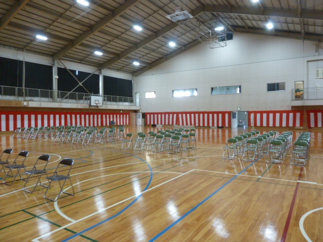 明日は1学期の始まりでもありますが、新入生が入学する「入学式」も行われます。前日は在校生が登校し、入学式の準備を行いました。まず、体育館の清掃を行い、その後、椅子を並べて会場を設営しました。準備をする在校生もてきぱき行動するので、スムーズに進みます。予定よりも早く準備がすみました。在校生の皆さん、お疲れ様でした。