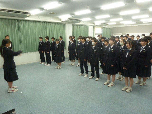 1学期の始業式は、在校生による校歌斉唱からスタートです。久しぶりでしたが、しっかりとした態度で歌うことができました。校長先生からは、ウォルト・ディズニーの言葉「現状維持は後退である」を引用しながら、現状に満足することなく、常に進化していくことを目指そうと呼びかけがありました。校長先生の話をうなずきながら聞く生徒が多数いるなど、学年が一つ上がり、大きなやる気を感じました。1学期、いいスタートが切れそうです。