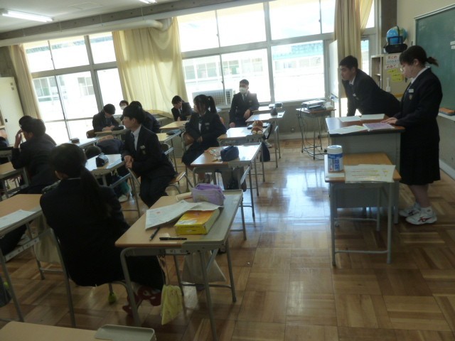 学級の係を決めた後は、クラスの目標を決めていきます。生徒が司会をするのでなく、生徒がうまく仕切りながら進めていました。そんなところにも成長を感じます。いいですね、2年生。