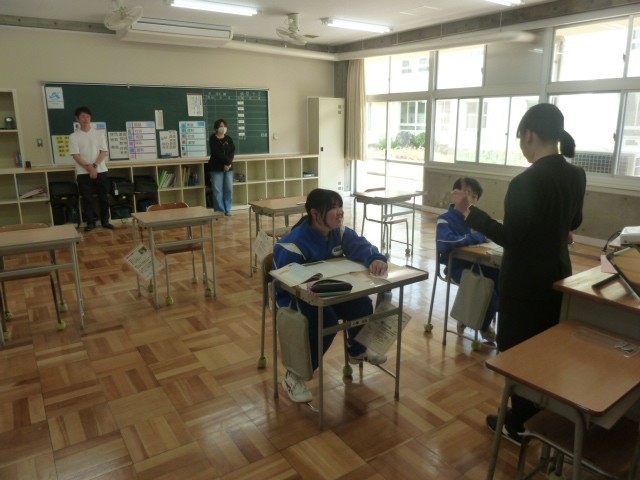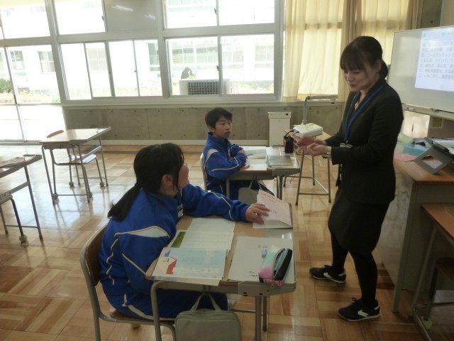 2年2組の授業参観は、「国語」です。めあては「春を感じるものをたくさん挙げよう。春の短歌をつくろう。」です。身近なものの中から「春」を感じるものを探します。「桜」を探した生徒は、「きれい」「気分が上がる」と想像をふくらませていました。また、「春休み」を探した生徒は、「春休みは他の休みより少ない」「花粉がきつい」と思いをつなげて、短歌をつくる材料を集めていました。温かい雰囲気の中で、授業が進んでいました。