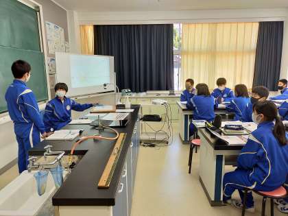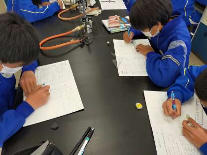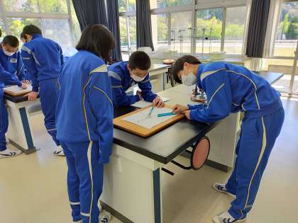 4/14(水) 3年生(理科)「力の合成」 公開日 2021/04/16 更新日 2021/04/16 できごと 3年生初めての実験は、力の合成です。予想をたて、実験を通して得られた結果から作図することで、力の合成の法則を導き出そうとしていました。 授業 3年
