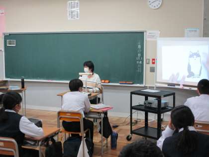今日は、朝読書の時間に教師による読み聞かせを行いました。それぞれの教師が、お気に入りの、おすすめの一冊を紹介していました。