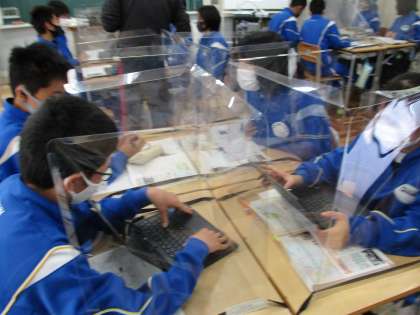 5/13(木) 3年生(社会)「太平洋戦争のはじまり」 公開日 2021/05/13 更新日 2021/05/13 できごと 太平洋戦争がどのようにして始まったのか、当時の様子をもとにグループで考えます。話し合いも感染予防に配慮しながら行っています。各班の考えをオクリンクで共有しています。