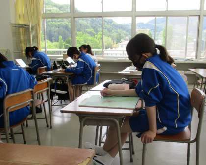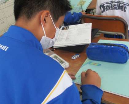 5/14(金) 1年生(美術)「名前をデザイン」 公開日 2021/05/14 更新日 2021/05/14 できごと 自分の名前をアピールするデザインを考え、描いています。タブレットを使って参考となるデザインを調べている子もいます。完成が楽しみです。