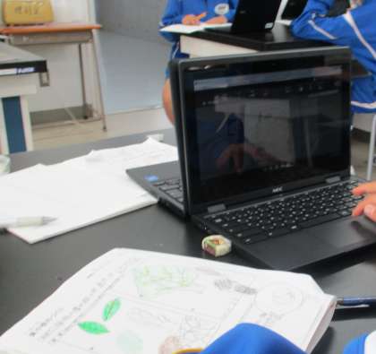 5/14(金) 1年生(理科)「共通点と相違点をまとめる」 公開日 2021/05/14 更新日 2021/05/14 できごと これまで観察してきた葉や根のスケッチを見ながら、共通点と相違点についてまとめています。葉脈や根のつくりをじっくり見ながら考えています。