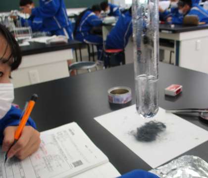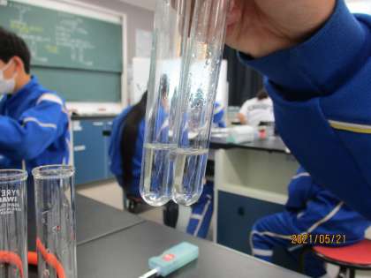 5/21(金) 2年生(理科)「金属が燃焼した後にできた物質は?」 公開日 2021/05/21 更新日 2021/05/21 できごと 燃焼前、燃焼後のマグネシウムと鉄の性質が変化しているか、それぞれを塩酸の中に入れて調べます。どうなるか、興味津々です。