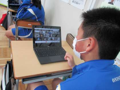その前に、クラス全員でmeetへのつなぎ方を確認しています。