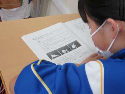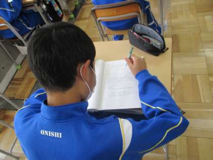 5/26(水) 3年生(数学)「文章題に挑戦」 公開日 2021/05/26 更新日 2021/05/26 できごと 文章題に挑戦しています。数学の文章題を解くにはコツがあります。 そのコツとは、文章に書かれている情報を整理し、解くために必要な部分をチェックすること・・・・解説にしっかり耳を傾けています。