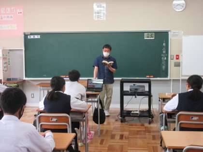 5/26(水) 読み聞かせ 公開日 2021/05/27 更新日 2021/05/27 できごと 今日の読書タイムは、教師による読み聞かせでした。担当教師は、思い思いのおすすめ本を読み、生徒は、いつもと違う雰囲気の先生方になんだか楽しそうでした。 学校生活