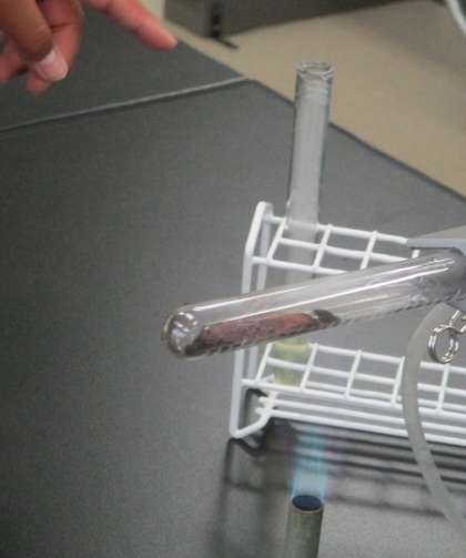 5/27(木) 2年生(理科)「二酸化炭素が発生し、銅ができる」 公開日 2021/05/27 更新日 2021/05/27 できごと 酸化銅と炭素を熱して反応させ、出てきた気体を石灰水に通すと白く濁ります。真っ赤になって反応している様子(還元)に驚いています。