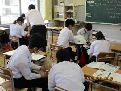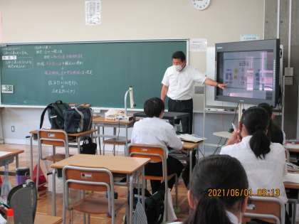 6/1(火) 2年生(社会)「日本の貿易の特徴は?」 公開日 2021/06/01 更新日 2021/06/01 できごと 加工貿易という日本国の貿易の特徴についての学習です。生徒は、いくつかのグラフを見たり、比較したりしながらさらに詳しく考察していきます。 授業 学校生活
