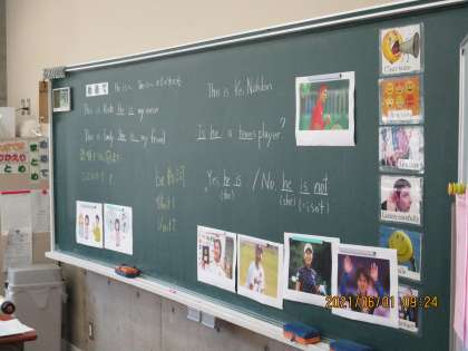 6/1(火) 1年生(英語)「be動詞を使った英作文」 公開日 2021/06/01 更新日 2021/06/01 できごと これは(この写真は)、ケイ・ニシコリですなど、This is 〜 、He is 〜 、She is 〜 を使った文の学習をしています。 授業 学校生活