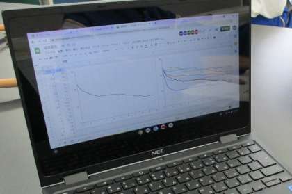 6/2(水) 2年生(理科)「温度変化する化学反応」 公開日 2021/06/02 更新日 2021/06/02 できごと 温度変化を伴う化学反応について、タブレットを活用して考察していました。グラフがとても見やすいですね。 授業 学校生活