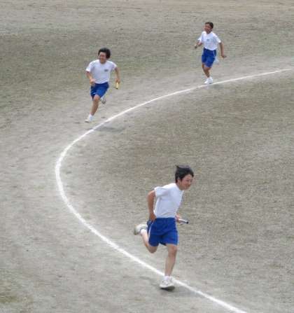6/7(月) 2年生(体育)「全員リレー」 公開日 2021/06/07 更新日 2021/06/07 できごと バトンパスの練習をした成果を発揮しようとどの子も全力で走っています。ミスをしながらも上達してきてます。