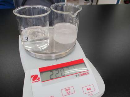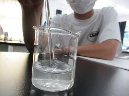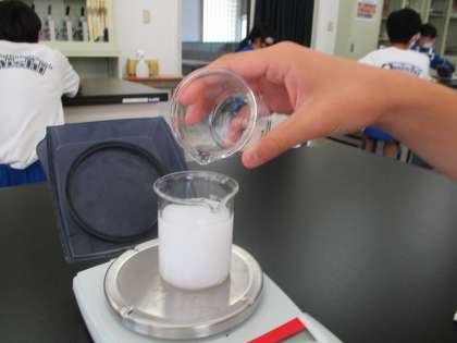 6/9(水) 2年生(理科)「質量保存の法則」 公開日 2021/06/09 更新日 2021/06/09 できごと 炭酸ナトリウム水溶液に塩化カルシウム水溶液を加えると水に溶けにくい炭酸カルシウムができ、白く濁ります。その前後での質量変化を調べます。