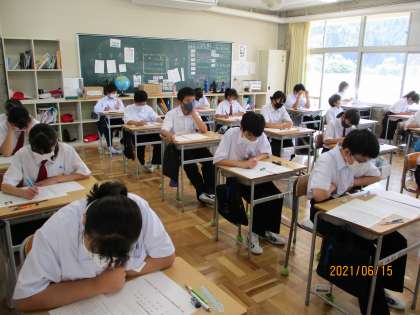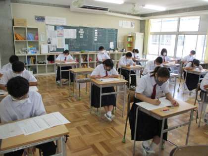 6/15(火) 期末テスト1日目 公開日 2021/06/15 更新日 2021/06/15 できごと 今日から期末テストです。1年生にとっては、初めての定期テストとなります。皆真剣に問題と向き合っていました。 授業 学校生活