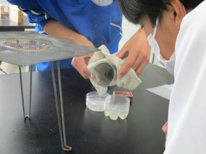 9/9(木) 3年生(理科)分解者の働きを調べる 公開日 2021/09/09 更新日 2021/09/09 Rできごと 庭の土を2つに分け、一つは坩堝に入れ加熱して微生物や細菌をすべて殺します。そして、水にデンプンと寒天を入れて熱して溶かしてから冷やして固めた寒天培地を2つ用意します。 この2つの寒天培地に加熱した土と、そのままの土を入れます。 さて、どうなるでしょうか?来週まで楽しみです。