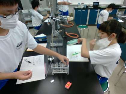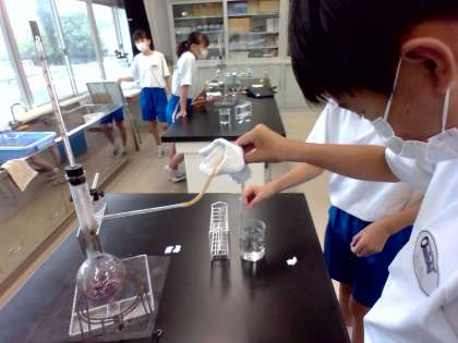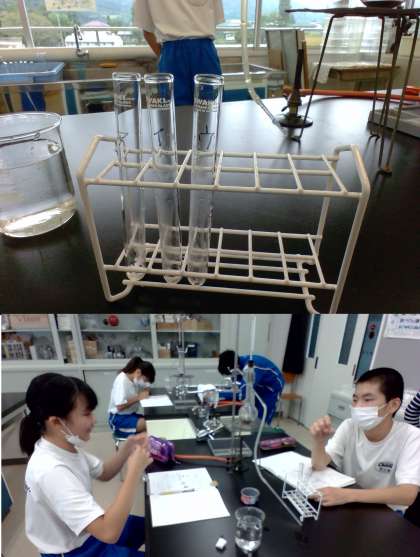 9/14(火) 1年生(理科)赤ワインからエタノールをとり出す実験 公開日 2021/09/14 更新日 2021/09/14 Rできごと 物質の沸点の違いを利用して、赤ワインからエタノールをとり出せるかの実験です。 うまく試験管3本の液体が集まりました。 においを嗅いでみたり、腕につけてみたりしてエタノールがとり出せたかを確認しました。 1年