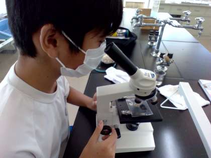 メダカにストレスがかかるため、制限時間は5分間。血液の流れを観察することができました。生命を尊重することも学びました。