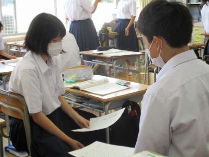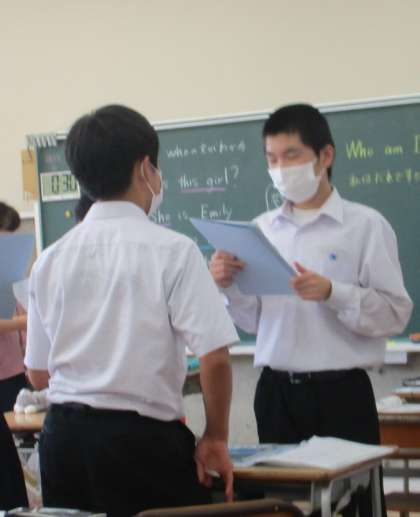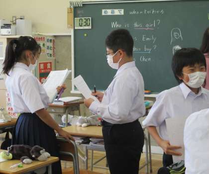 10/4(月) 1年生(英語)「Who am I ?」 公開日 2021/10/04 更新日 2021/10/04 Rできごと Who を使った会話文に挑戦しています。これまで学習してきた can を使って「Can you swim?」・・質問文を作って聞き、答えをもとに誰かを推理しています。「 Who am I?」 「 You are 〜 」