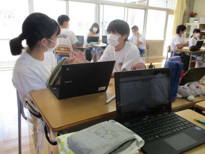 10/4(月) 2年生(国語)「思いを引き出すインタビュー」 公開日 2021/10/04 更新日 2021/10/04 Rできごと 相手が夢中になっていることをもとに、インタビューしています。思いや考えを引き出すためには、どのように質問したらよいか・・・気づいたことをオクリンクに記入しています。