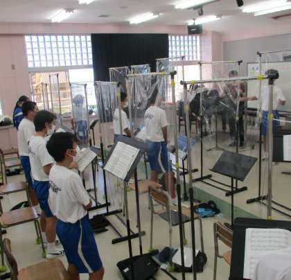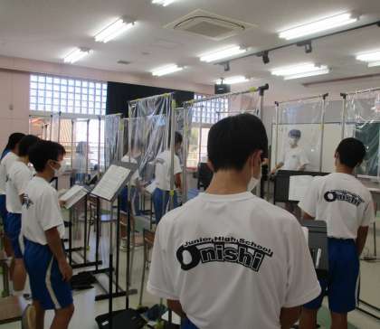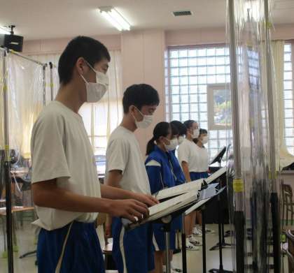 10/8(金) 2年生(音楽)「合唱練習」 公開日 2021/10/10 更新日 2021/10/10 Rできごと コロナ対策をした上での合唱練習・・・なかなか大変ですが、桜華祭に向けて意識は高まってきています。マスク越しですが一生懸命に声を出しています。頑張りに期待しています!