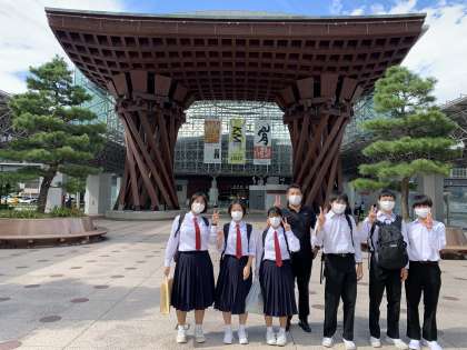 いよいよ修学旅行も大詰めです。金沢駅に集合して、バスに乗ります。