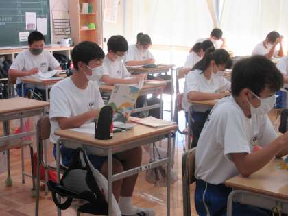 10/11(月) 2年生(国語)「『モアイは語る』を読もう」 公開日 2021/10/11 更新日 2021/10/11 Rできごと 今日から新しい教材「モアイは語る〜地球の未来〜」に入りました。最初なので、段落ごとに順番に音読しました。