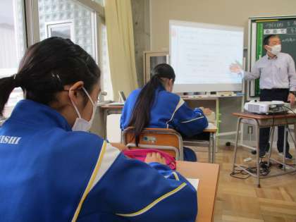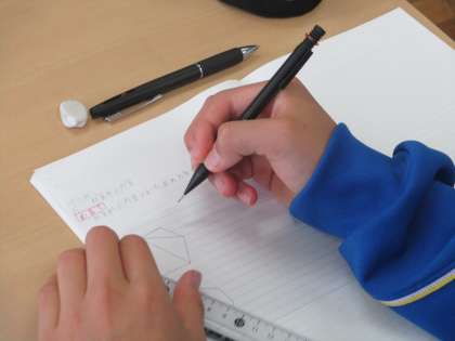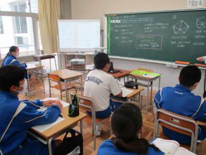 10/13(水) 2年生(数学)「n角形の内角の和」 公開日 2021/10/13 更新日 2021/10/13 Rできごと 小学校で学習した三角形の内角の和180度を活用して、多角形の内角の和を求めます。1つの頂点からそれ以外の頂点まで線を引き、いくつの三角形に分かれるかを調べるとn-2個の三角形ができることから、180°×(nー2)という計算式が出てきます。
