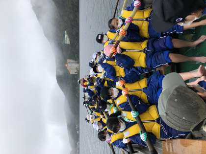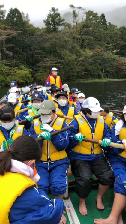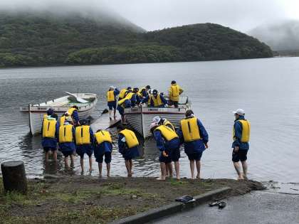 10/13(水) カッター実習開始 公開日 2021/10/13 更新日 2021/10/13 1年高原学校 雨が小降りなので、カッター実習を開始しました。最初は息が合わなかったのですが、少しずつ息が合うようになりました。上手に漕いでいました。