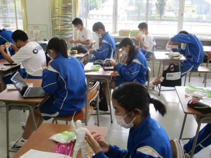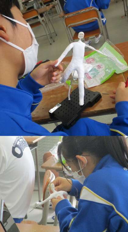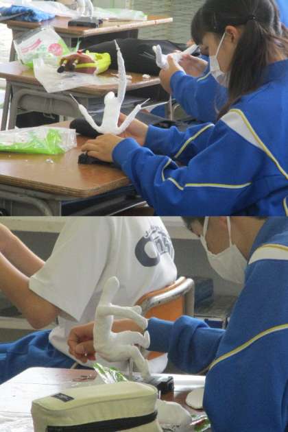 10/15(金) 2年生(美術)「瞬間の美しさを形に」 公開日 2021/10/15 更新日 2021/10/15 Rできごと 黙々と取り組んでいます。自分がやってきたスポーツの一場面、一瞬の動きを的確にとらえている作品が多く、みな作業に集中しています。