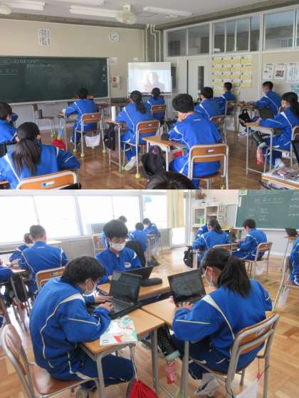 10/21(木) 全校一斉道徳『ネットリテラシー教材「加害者にならないために」』 公開日 2021/10/22 更新日 2021/10/22 Rできごと 本日6校時に全クラスで一斉に道徳の授業をしました。この授業では、藤岡・多野地区のいじめ防止フォーラムの内容をクラスで実施しました。 群馬県から提供されたネットリテラシー教材(動画)を使いながらの授業でしたが、身近に起こりうそうないじめの内容だったので、生徒達も自分に置き換えて考えることができました。