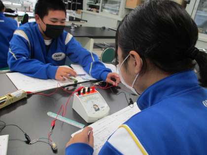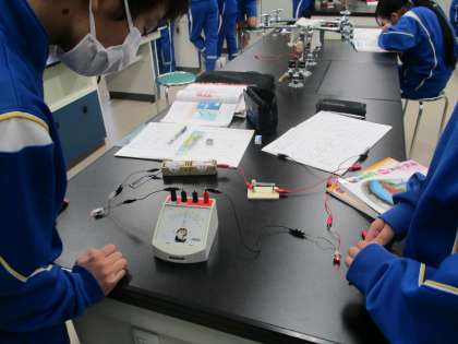 10/22(金) 2年生(理科)「直列、並列回路の電流」 公開日 2021/10/22 更新日 2021/10/22 Rできごと 豆電球を直列つなぎにした時、並列つなぎにした時、それぞれの場所で電流がどのようになるか、予想を立ててから測定します。 直列回路では電流の大きさは全て同じでしたが、並列回路では・・・