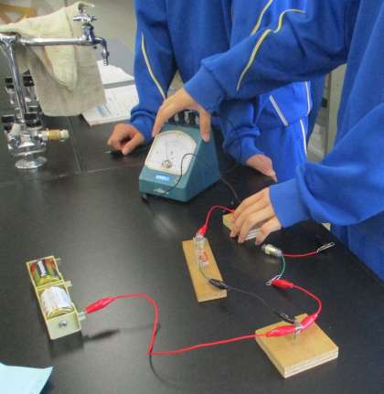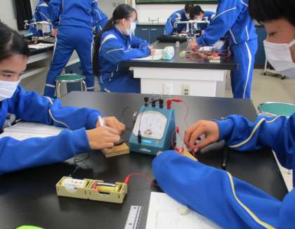 10/29(金) 2年生(理科)「直列・並列回路の電圧」 公開日 2021/10/29 更新日 2021/10/29 Rできごと 直列回路の電流の大きさはどこでも同じ、並列回路の電流の大きさは分かれても合流すると元と同じになることを学習してきました。 それでは、電圧はどうなるか?興味津々です!!