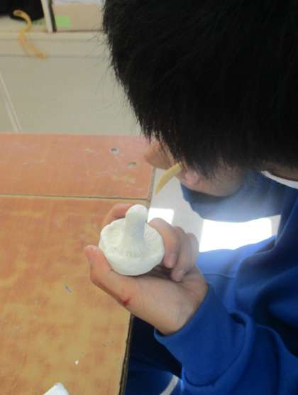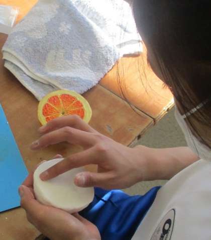 11/5(金) 1年生(美術)「粘土で作ろう野菜・果物」 公開日 2021/11/05 更新日 2021/11/05 Rできごと 野菜や果物の特徴をとらえ、その特徴をいかに表現するかを考えながら制作しています。しいたけの裏のヒダヒダや、みかんの断面など、細かいところまで気を配っています。