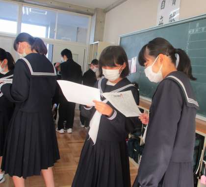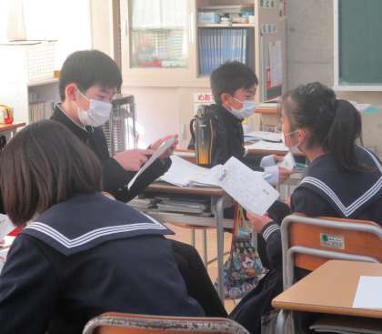 11/10(水) 1年生(英語)「三単現」 公開日 2021/11/10 更新日 2021/11/10 Rできごと 「三単現」は、中学生が最初につまずく文法事項だと言われています。主語が〈三人称〉かつ〈単数〉で、動詞の時制が〈現在形〉のこと。 基本は、一般動詞に語尾にそのまま-s(-es)を付けること、He likes pizza. He plays tennis. He works・・ 2人組になって表の中で該当するのは誰かを当てています。まずは会話で慣れることです。