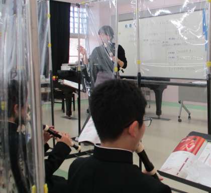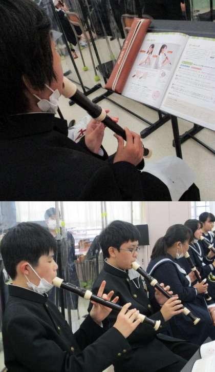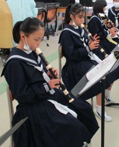 11/15(月) 1年生(音楽)「アルトリコーダーの秘密」 公開日 2021/11/15 更新日 2021/11/15 Rできごと これまで小学校ではソプラノリコーダーを使ってきました。ここではアルトリコーダーを使います。実際に使ってみると・・気付きを発表します。同じところ、違うところ、ネームプレートとともにホワイトボートに書かれます。 大きい、全体的に音が低い、5番目の穴が大きい、口をつけるところが黒い、指が届きにくい・・・たくさん気づいたら、音階に挑戦です!
