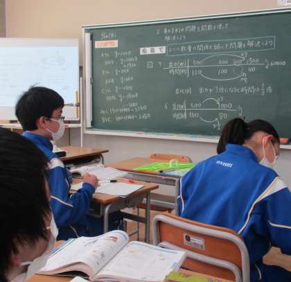 11/24(水) 1年生(数学)「身近な生活の関数」 公開日 2021/11/24 更新日 2021/11/24 Rできごと これまで学習してきた一次関数をもとに、身近な生活の問題を関数に当てはめて考えています。自転車のギア, 前と後ろにあってチェーンで結ばれて, かみ合っています。ギア比が大きいと高速走行が可能になります。ギア比が小さいと登り坂などが楽に登れます。 楽だけど少ししか進まない、きついけどスピードが出る・・・反比例のしくみにビックリ!!