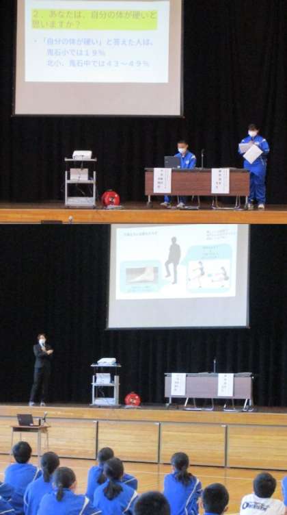 子ども達は真剣に聞いていました。これからは、きっと姿勢をよくするための運動を意識的にすることでしょう。