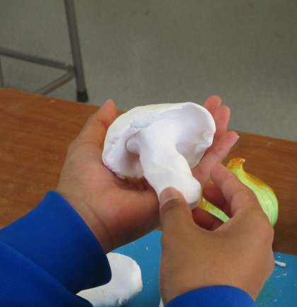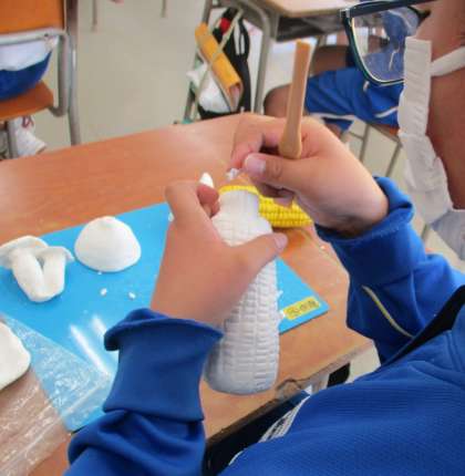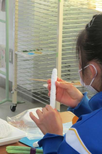 11/26(金) 1年生(美術)「野菜・果物」 公開日 2021/11/27 更新日 2021/11/27 Rできごと 1つできたらもうひとつ、本物そっくりの野菜・果物がどんどんできあがってきました。こまかい模様にも気を配りながら丁寧に作り上げています。