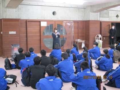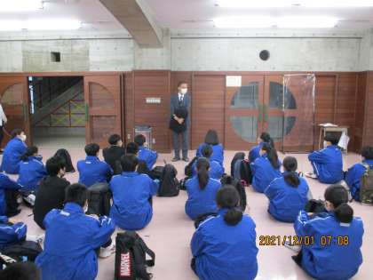 12/1(水) 2年長野校外学習 公開日 2021/12/01 更新日 2021/12/01 Rできごと 本日、2年生が長野校外学習に無事出発しました。 出発式では委員長からあいさつがあり、目標の確認がありました。目標は「なぜ、長野市には人が集まるのか」です。そして「しっかり行動してきましょう」と全員に声をかけました。 2年生は中学校生活で初めて校外にでて学習することになります。ぜひ、楽しんで学習してきてください。