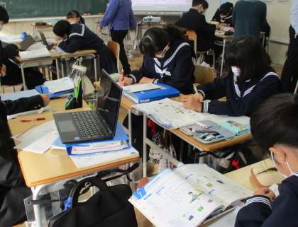 12/1(水) 1年生(英語)「When is 〜」 公開日 2021/12/01 更新日 2021/12/01 Rできごと 「When is your birthday?」友達の誕生日を聞いて何がほしいか・・を尋ねる会話文を作っています。 誕生日は何月何日?・・何がほしい?・・を英語で会話できるようタブレットを使ったり、ALTに聞いたりしながら作文しています・