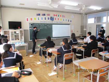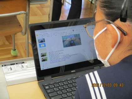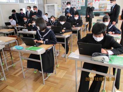 2年生の英語の時間は、藤岡市教育研究所の検証授業が行われました。今日のめあては「聞き手にとって魅力的なスライドをつくろう」でした。友人のつくった英作文を共有しながら、自分のスライドを仕上げていました。タブレットを使いながら、どんどん作業している生徒達の情報活用能力は確実に上がっていることが分かりました。
