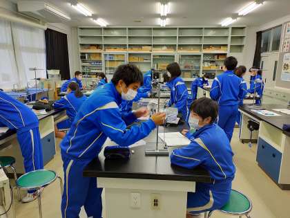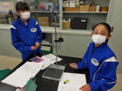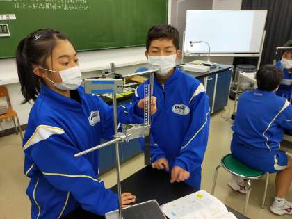 12/7(火) 1年生(理科)「ばねの伸び」 公開日 2021/12/08 更新日 2021/12/08 Rできごと 音の学習のあとは、力の学習に入ります。ばねにかかる力の大きさと伸びには何か関係性があるのでしょうか。予想をたててから実験します。 授業 1年