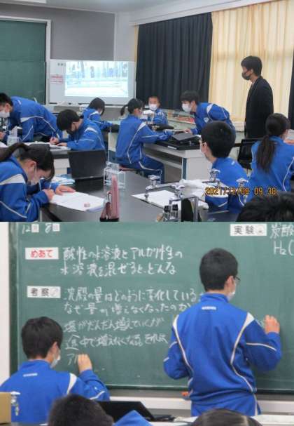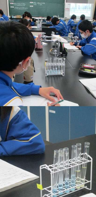 12/8(水) 3年生(理科)「アルカリ性と酸性の水溶液を混ぜると」