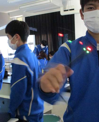 その点いている発光ダイオードを振ってみると、点滅していることが分かります。「交流」は、+ と − がもの凄いスピードで交互に入れ替わっているのがわかります。