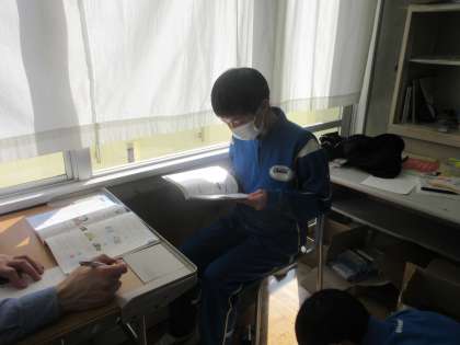 2/1(火) 2年(英語)「ネイティブな発音を目指そう」 公開日 2022/02/02 更新日 2022/02/02 Rできごと 今日は教科書の英文を何度も何度も練習して、ケン先生に聞いてもらい、評価してもらいました。すらすらネイティブに話すために頑張っていました。