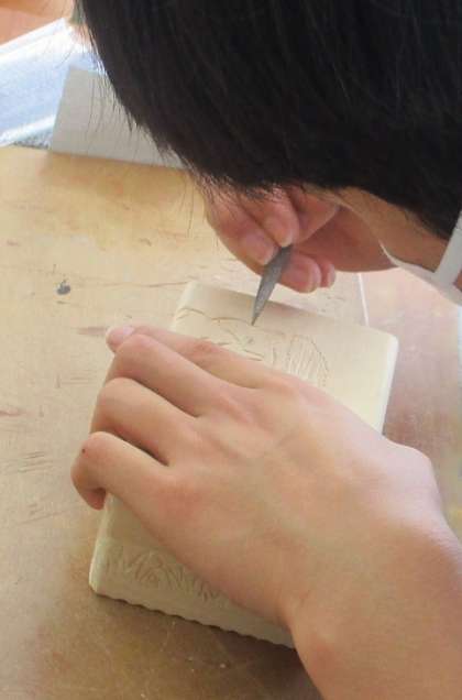 みな、すごい集中力です。黙々と彫刻刀で細かいところまで気をつけながら彫っています。