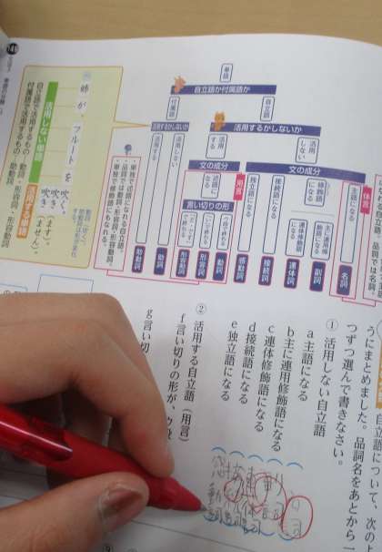 これまで自立語・付属語、活用する・しないで分けてきましたが。分類の方法さえわかれば10の品詞も簡単に覚えることができます。基礎固めをするためワークやドリルパークで繰り返し問題を解いています。だんだん分かってきています。