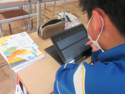 3/1(火) 2年生(国語)「構成や展開を工夫して書こう」 公開日 2022/03/01 更新日 2022/03/01 Rできごと 今まで学習してきた「起承転結」を意識して文章を書く授業でした。「ある日の自分の物語」のテーマのもと、過去の自分の出来事を振り返りながら書きました。どんどんタブレットに打ち込む生徒が多く、楽しみながら学習していました。
